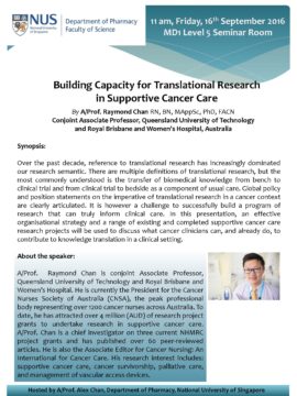 Building Capacity for Translational Research in Supportive Cancer Care by A/Prof. Raymond Chan