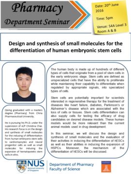 Design and synthesis of small molecules for the differentiation of human embryonic stem cells by Mr. Zhong Qixing