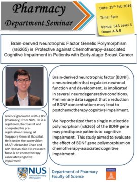 Brain-derived Neurotrophic Factor Genetic Polymorphism (rs6265) is Protective against Chemotherapy-associated Cognitive Impairment in Patients with Early-stage Breast Cancer by Mr. Terence Ng Rong De